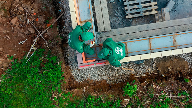 Процесс заключается в создании каркаса из металлических стержней. Он размещается в опалубку и заливается бетоном.