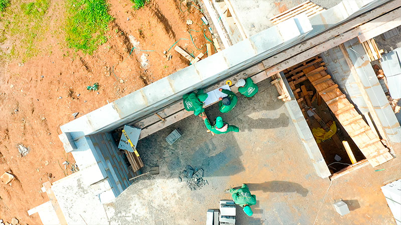 материал в процессе возведения несущих и внутренних стен, балок перекрытия, межкомнатных перегородок.