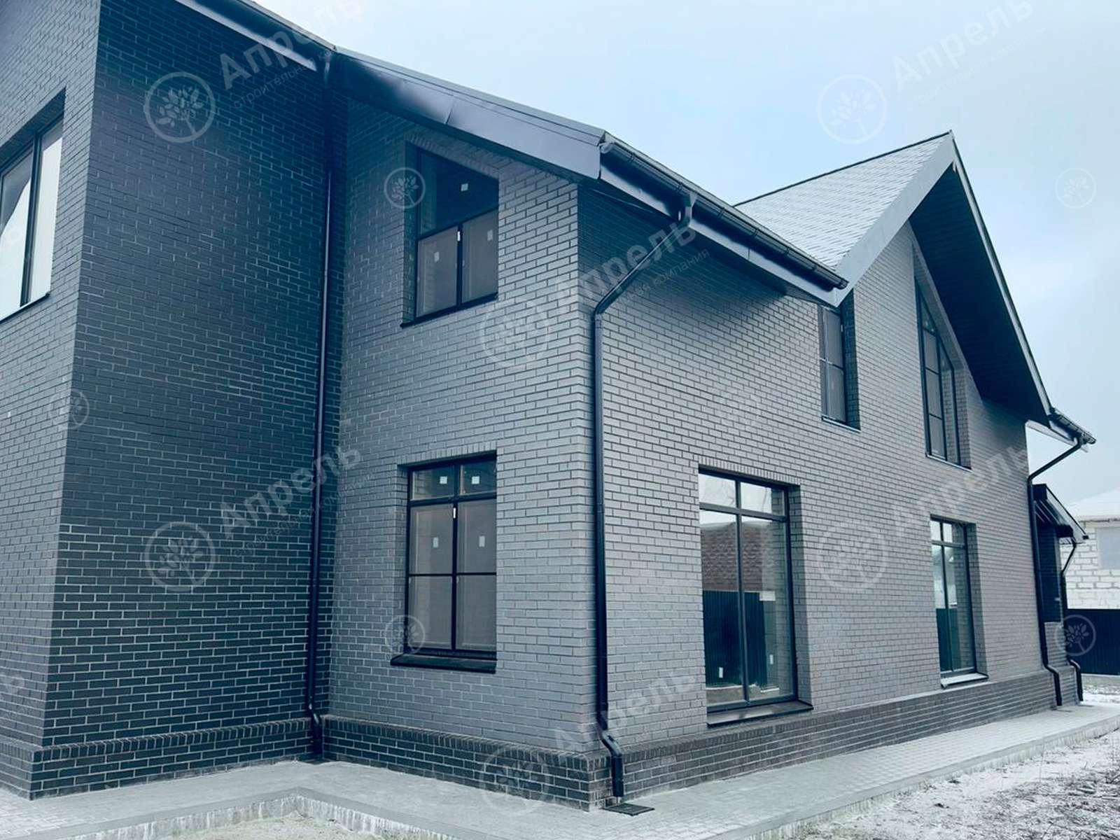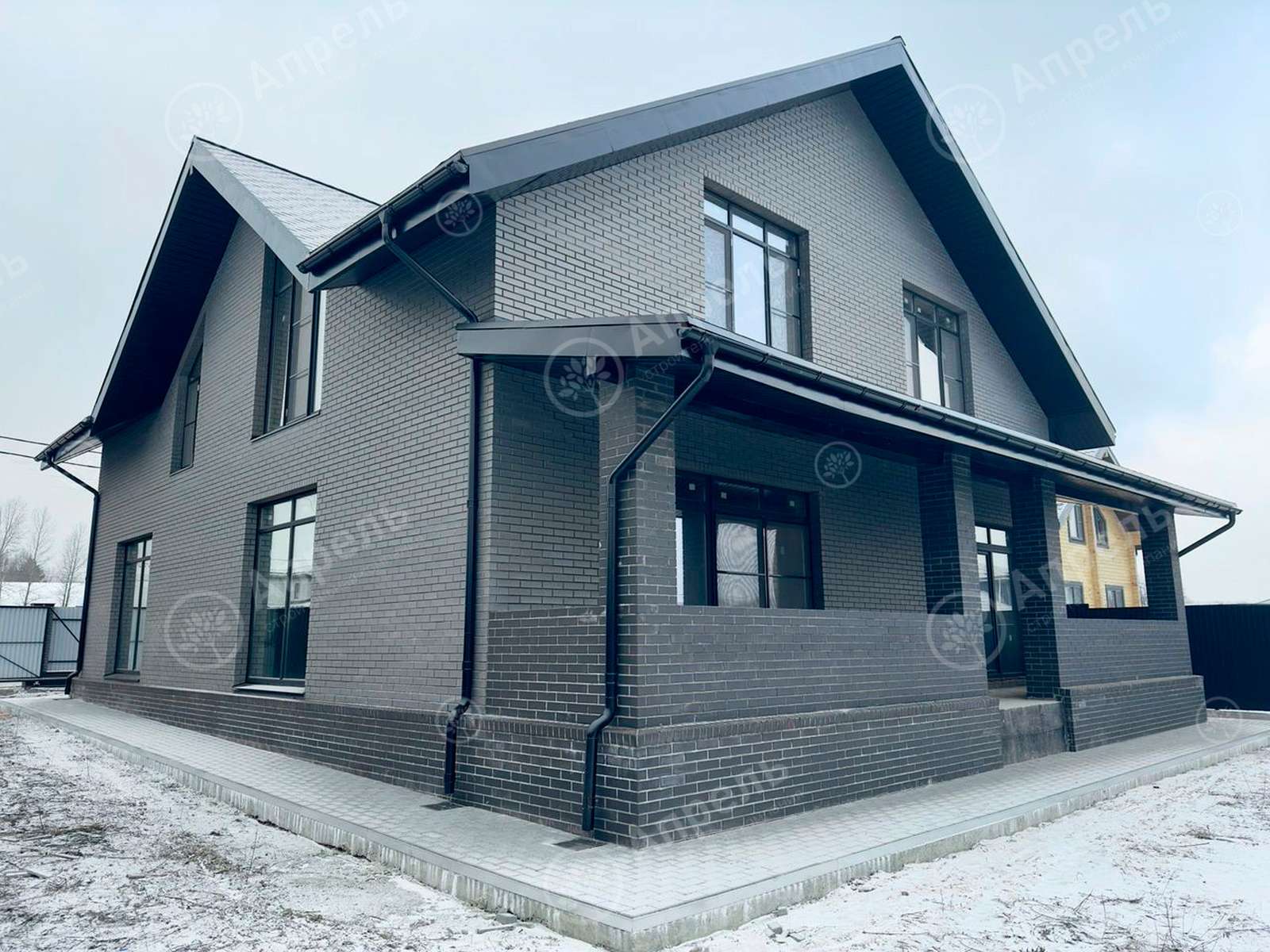 В этом доме 4 спальных комнаты, кухня-столовая и 3 санузла.  Капитальные стены из газобетонных блоков. Фасад дома из клинкерного кирпича марки 250. Дом с мансардным этажом,  большой мастер-спальней и террасой