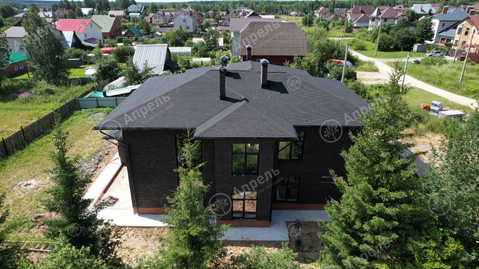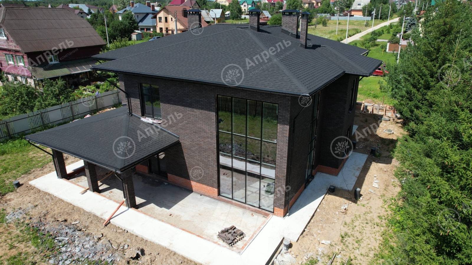 В этом доме 4 спальных комнаты, кухня-гостиная и 3 санузла. Капитальные стены из газобетонных блоков. Фасад дома из керамического кирпича с цветным швом. Дом с гаражом, сауной, вторым светом в гостиной и большими витражами.