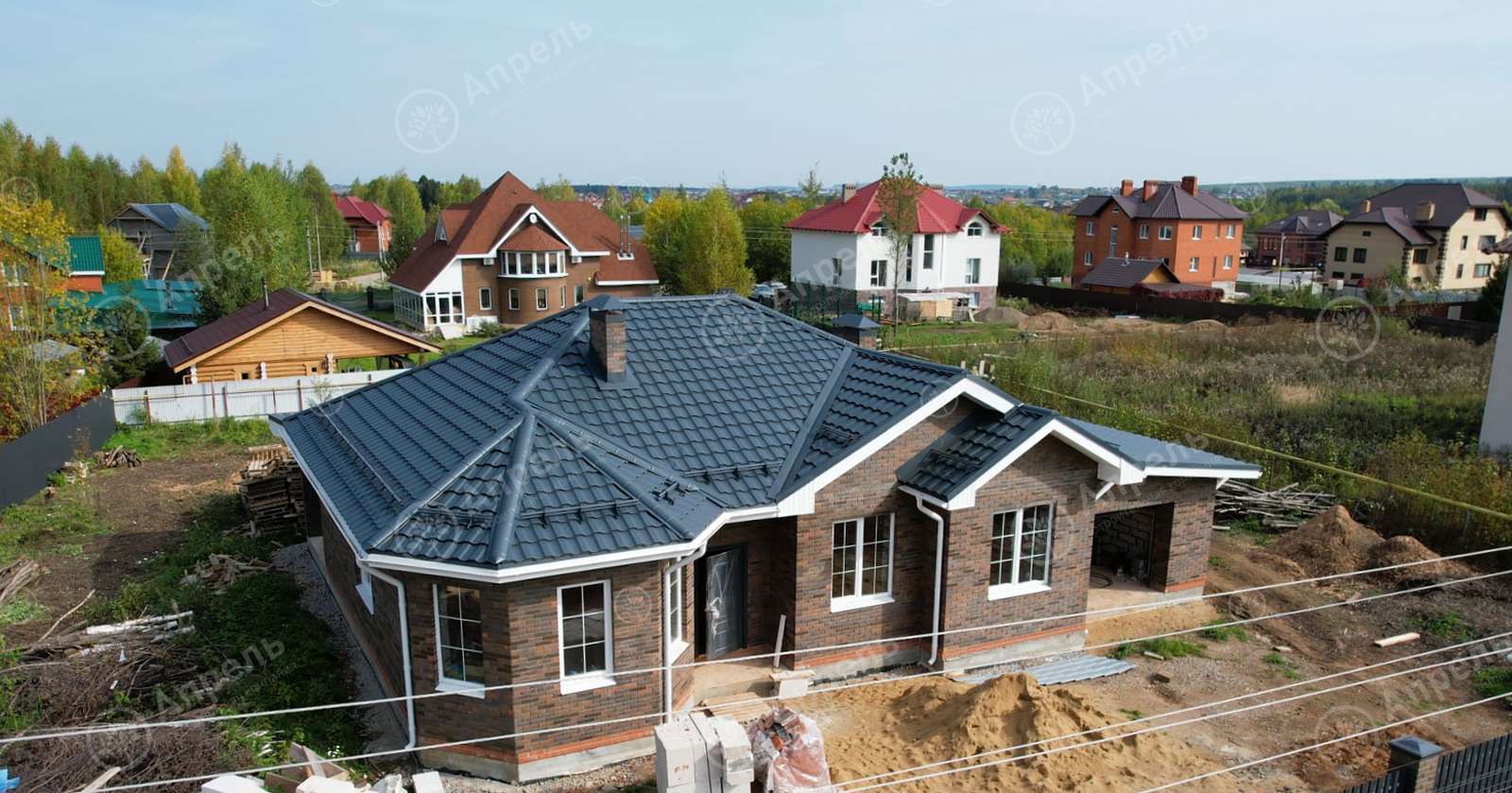 В этом доме 2 спальных комнаты, кухня-гостиная и 2 санузла.  Капитальные стены из газобетонных блоков. Фасад дома из клинкерного кирпича марки 250. Дом с эркером в гостиной, террасой на задний двор и гаражом.