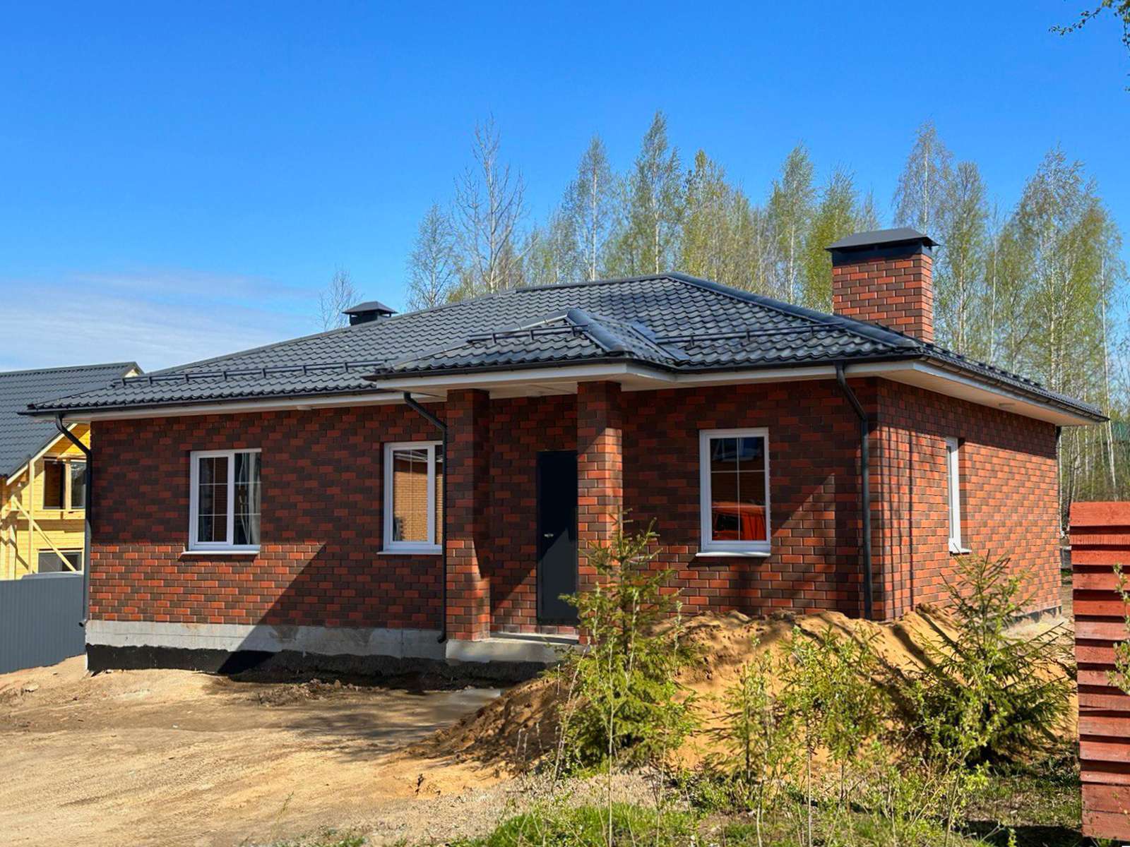 В этом доме 3 спальных комнаты, кухня-гостиная и 1 санузел. Капитальные стены из газобетонных блоков. Фасад дома из клинкерного кирпича марки 250. Построено более 10 таких домов